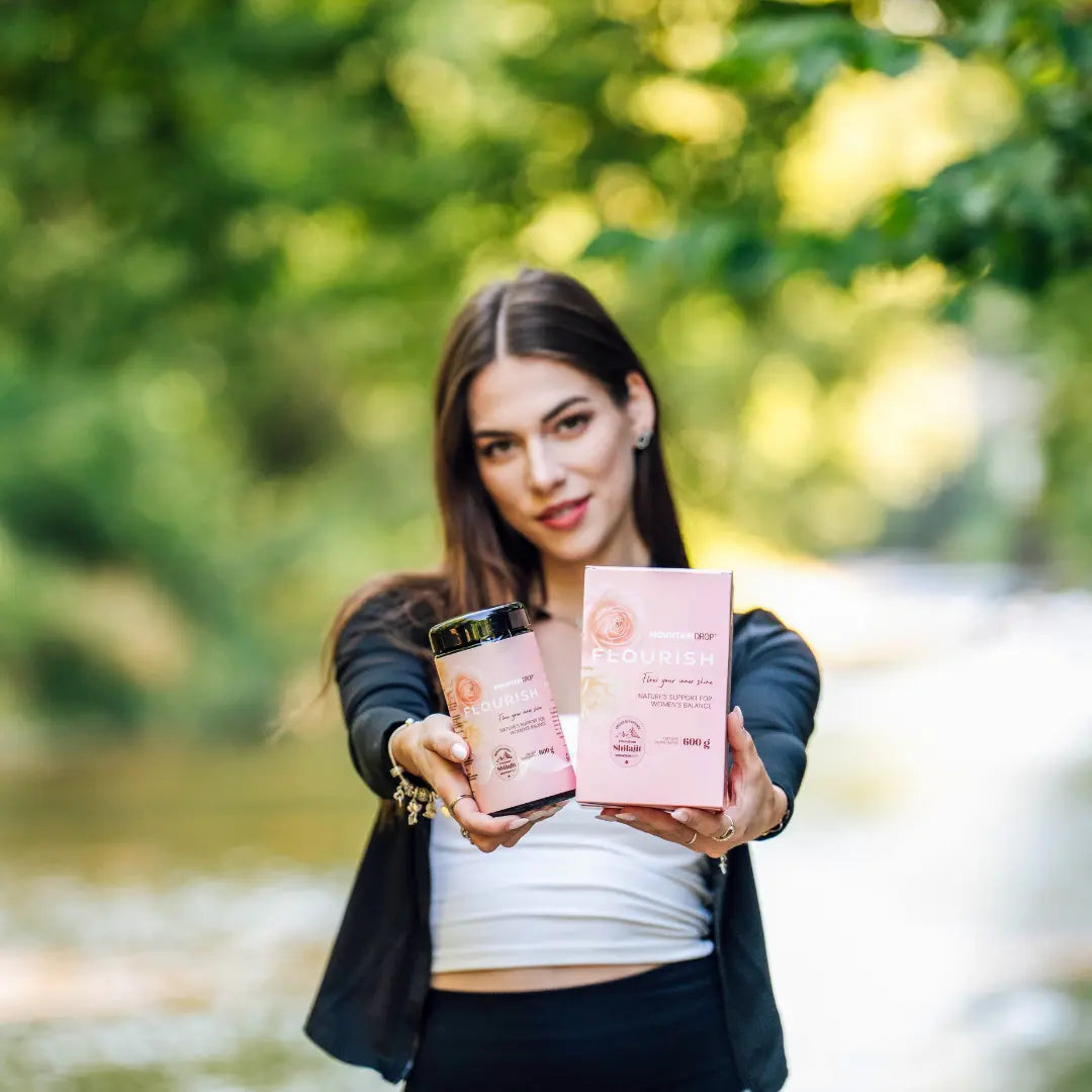 Flourish ja Shilajit yhdessä tukevat naisen hormonitoimintaa, mielialaa ja kuukautiskiertoa – auttaen kehoa palaamaan sen luonnolliseen rytmiin.